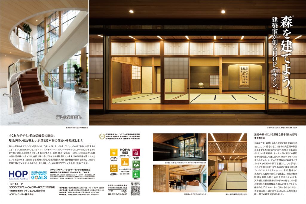 正統な和の精神やスタイルを現代の生活空間の中で、モダンに生かし、楽しむ術を提案し続ける、「和」の心を楽しむ全国誌「和樂」(和楽)12月号(11月12日発売)にて、「人生を変える終の家」と題してHOPの作品が紹介されました!