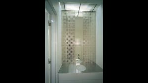 古くからの街並みを新しく塗り変えるような白いタイルと、直線を生かしたスクエアなデザイン。奥まったエントランスと坪庭がアルミのルーバーで目隠しされ、周囲の喧騒と視線をシャットアウト。道行く人もつい足を止めたくなる、オーナーのセンスが発揮された佇まいだ。