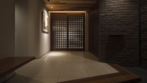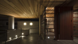 料理が好き、映画が好き、音楽が好き、宴が好きetc……そんな風にたくさんあるやりたいことを、すべて出来る家にしたい。その中で大きな空間を必要とするのは、友人たちを招いてもてなすためのスペースだろう。そのために大人数がくつろげるリビングと、ダイニングキッチン、和室をひとつながりの空間として使えるようにしておき、それぞれのゾーンを木、畳、タイルと、床材を変えて視覚的に独立させた。春は桜が見事に咲く、公園に面した大きな窓を持つリビングには、裸火の暖炉を設置。炎の揺らめきは安らぎとぬくもりを与えてくれる。もてなしの料理を作るためのキッチンは、オーナー夫妻のこだわりのコーナー。ときには屋上まで料理を運んで、テラスでパーティーを開くこともあるという。ガラス張りのウォークインワインセラーから、料理に合うものを選ぶ。